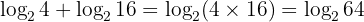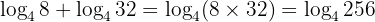 Karena basisnya sama, kita bisa langsung menggunakan sifat logaritma penjumlahan. Kedua bilangan tersebut dikalikan terlebih dahulu.