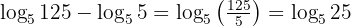 Pertama, perhatikan bahwa kedua logaritma memiliki basis yang sama, yaitu 5. Oleh karena itu, kita dapat menggunakan sifat pengurangan logaritma: