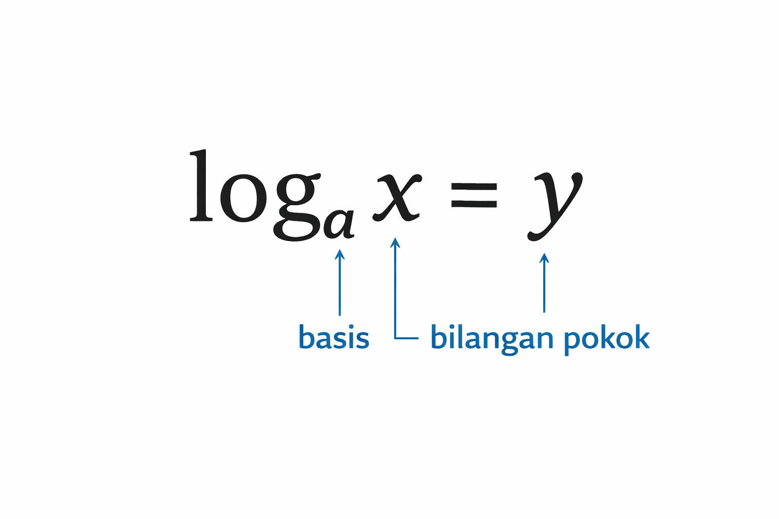Di sini, a disebut basis atau bilangan pokok. Sedangkan b disebut numerus, yaitu bilangan hasil pemangkatan.
