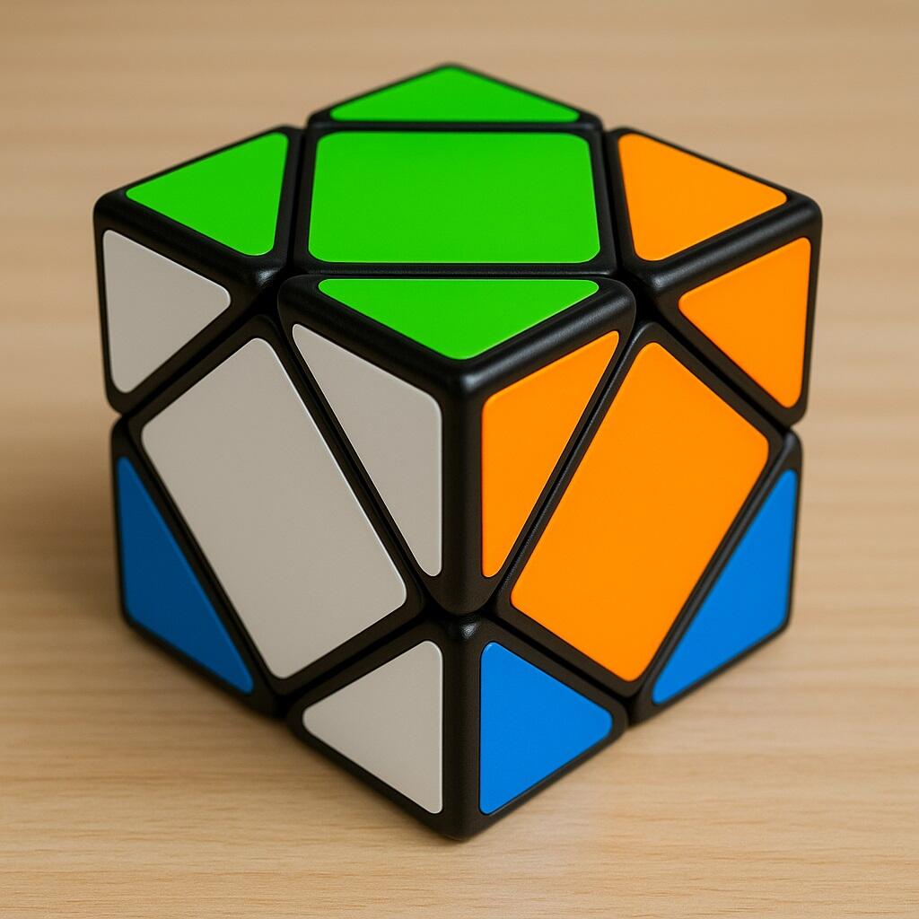 Kali ini rubiknya memiliki bentuk kubus, akan tetapi potongan sisinya berputar pada sudut tertentu. Meski terlihat biasa saja, rubik Skewb ini dapat membuat para pemain berpikir keras untuk menyelesaikannya.