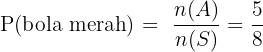 Untuk kejadian terambilnya bola merah, kita memiliki 5 bola merah, jadi n(A) = 5.